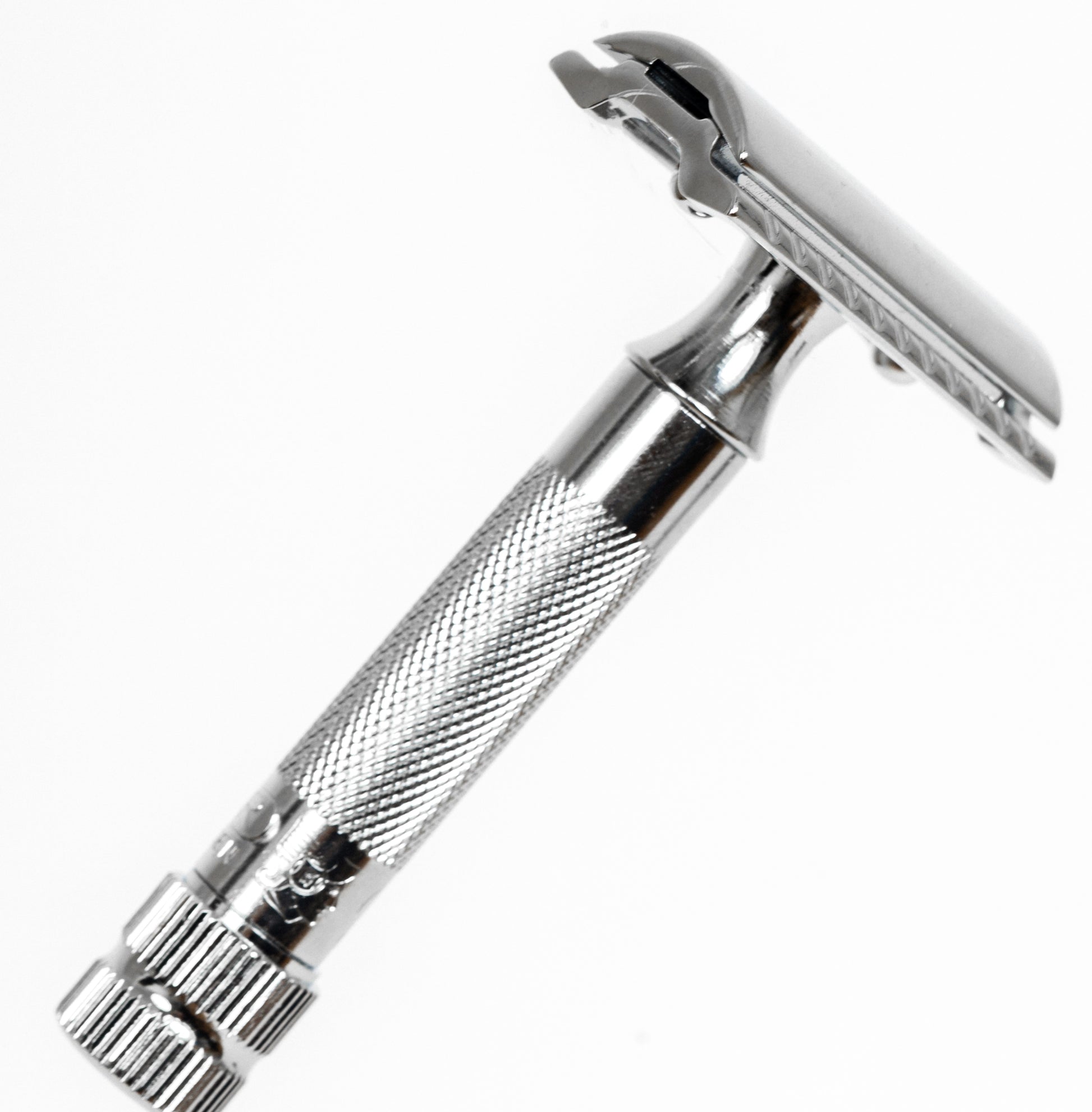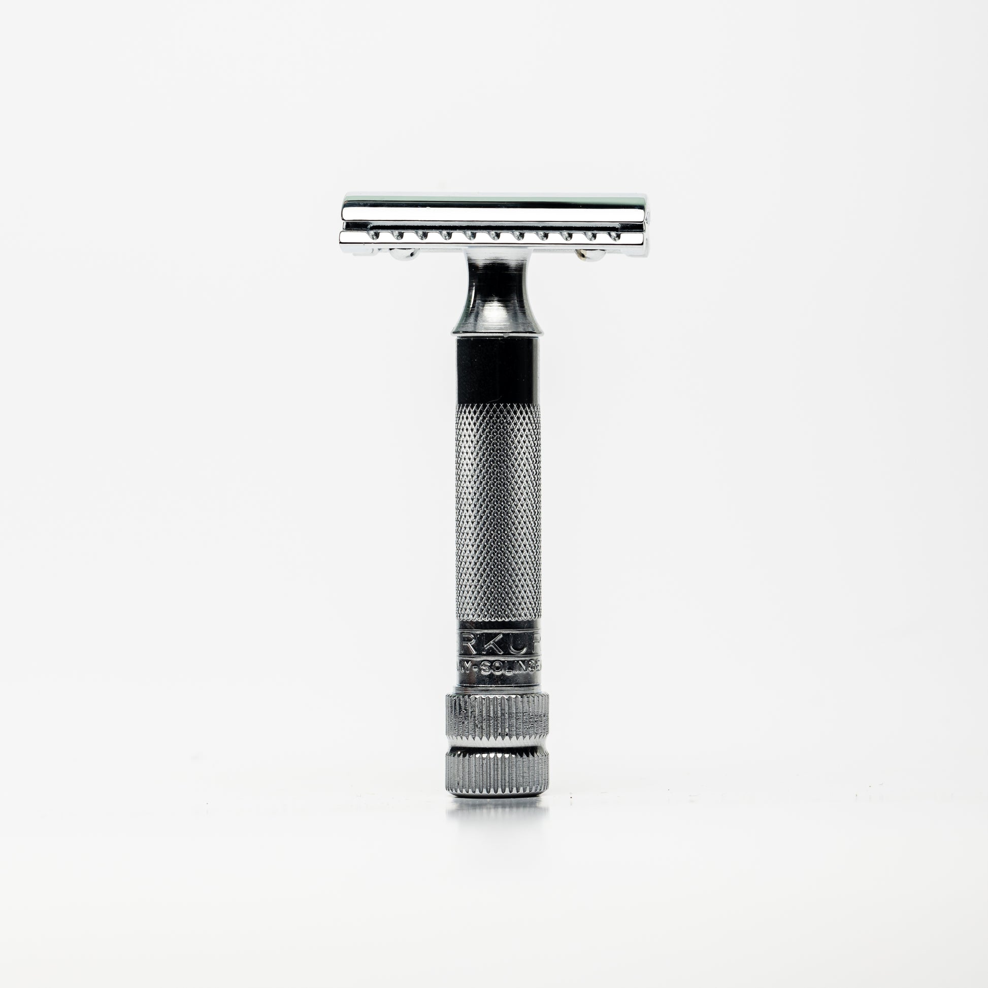 The Merkur 34C is a classic double edge safety razor that has continued to dominate the wet-shaving landscape for the past 100 years. This classic razor is suitable for most shavers, with a textured handle and grip, and a two piece design. Its ease of use makes it perfect for new and veteran shavers alike.